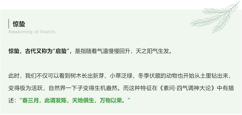 惊蛰时节,阳气萌动,大自然有了新的活力。希望大家可以顺应自然规律,一起度过活力满满的一年!