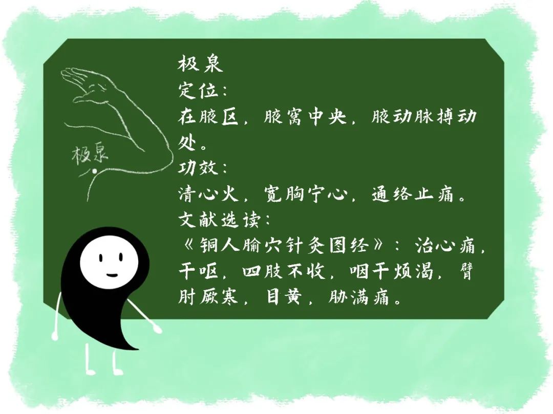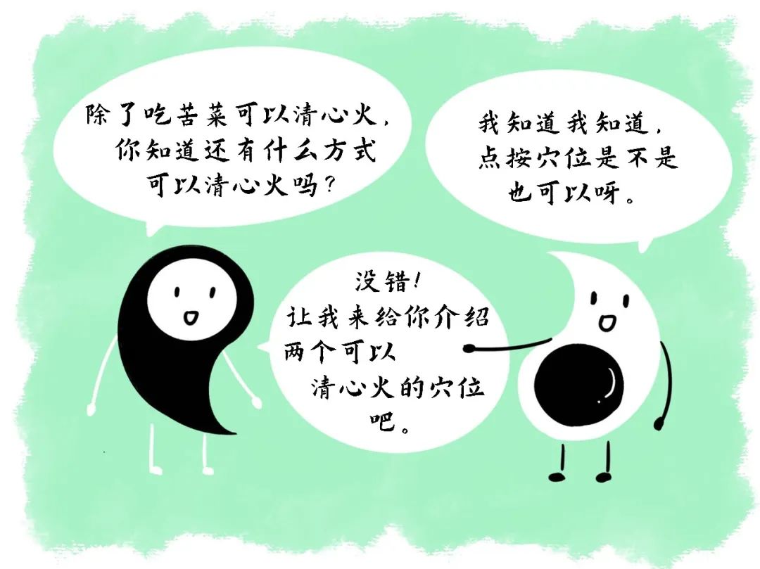 俗话说,“心静自然凉”,其实不无道理。入夏以后,不少人都会或多或少出现小便发黄、口腔溃疡、大便干结或是心情烦躁等症状,而这实际上就是中医所说的“心火过旺”的表现。上文提到的吃苦菜,可以降心火,以下介绍一些穴位,也可以帮助缓解心火旺导致的一系列症状。夏季养生保健可以经常点按心经的极泉穴、心包经的内关穴、劳宫穴等,有清心火,祛内热的作用。