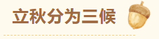 我国古代将立秋分为三候:“初候凉风至, 二候白露降, 三候寒蝉鸣。”也就是说,立秋后的前5天,气温开始逐渐降低,凉爽的秋风开始吹拂;中间5天天气更加凉爽,早晨的露水开始增多,如同白色的露珠一般;最后5天,寒蝉就会开始鸣叫。