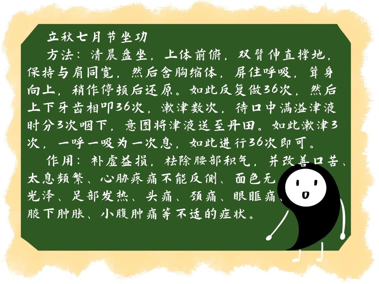 立秋宜早卧早起,食酸敛肺练坐功