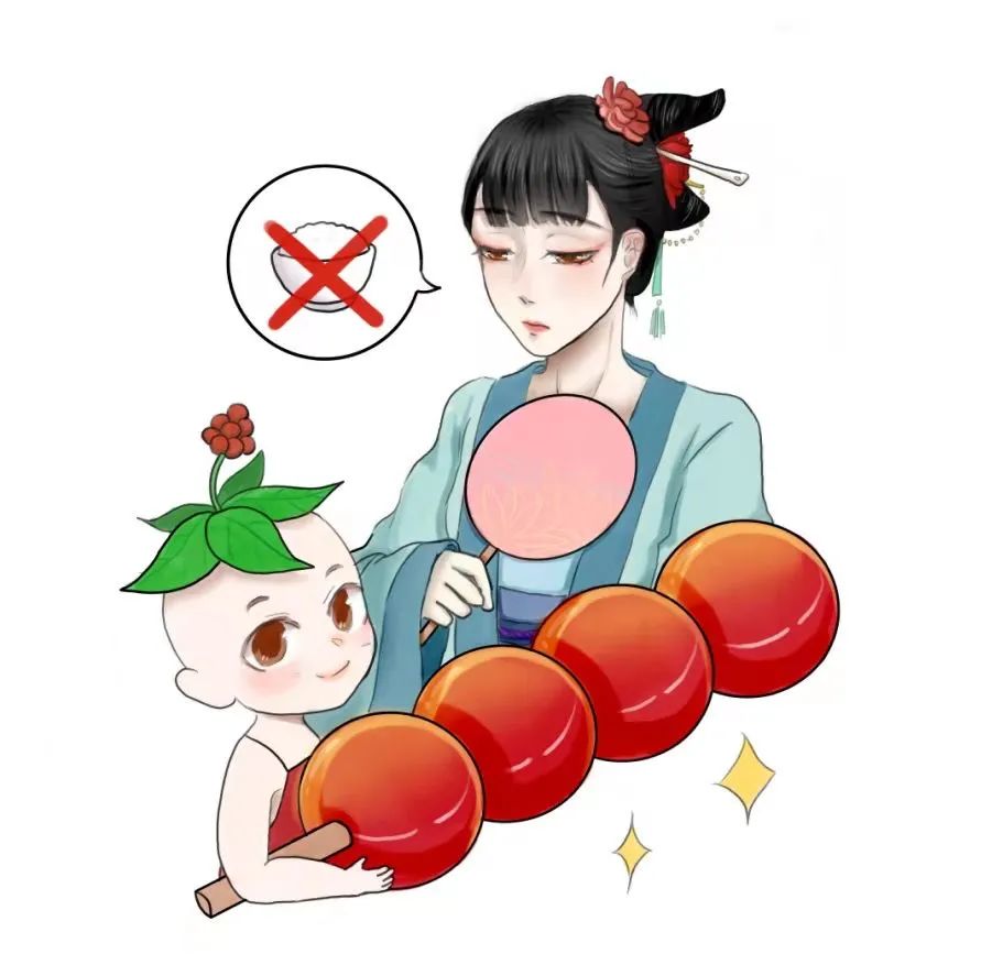 为什么糖葫芦治好了贵妃的病呢?我们一起来看看冰糖葫芦的用料吧~糖葫芦用到的红果其实是我们熟知的山楂,这是一味药食同源的药物。中医认为,山楂酸、甘、微温,归经归脾、胃、肝经,可消食健胃,行气散瘀。对于肠胃积滞,尤其是肉食有很好的作用,此外还有降脂化浊的功效。