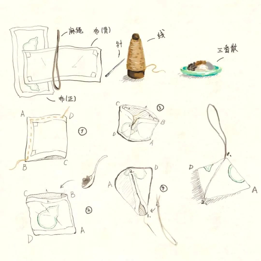 那么,就让我们来一起学习一种防疫香囊的做法吧: