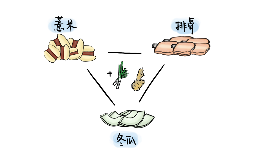 在寒冷的冬天,人们屋子里暖气开得足足的,不免内生燥热。这款汤品中有具有清热作用的冬瓜和健脾作用的薏苡仁,使新出锅的热汤不仅味道鲜美,还能清解内热,补而不腻,温而不燥。正适合一家人围坐在桌前,喝汤聊天,过一个暖冬。