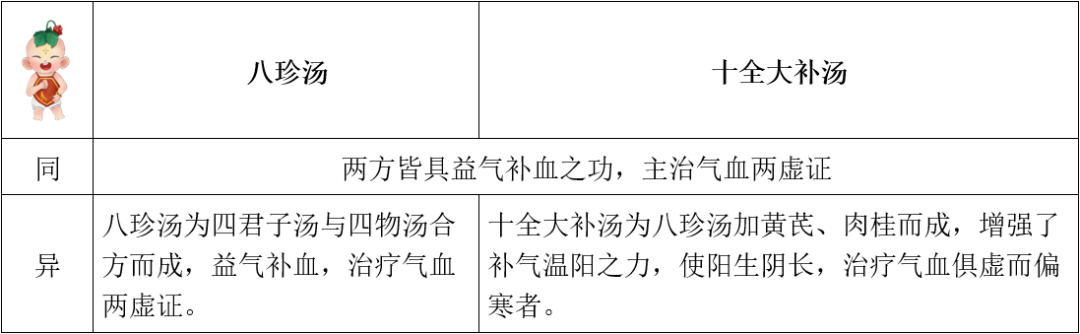 2、本方为治疗气血两虚之基础方,临证时,当视气血虚损程度,相应调配君药与用量。若气虚偏重者,加大人参、白术用量以之为君;若血虚偏重者,加大熟地黄用量以之为君。