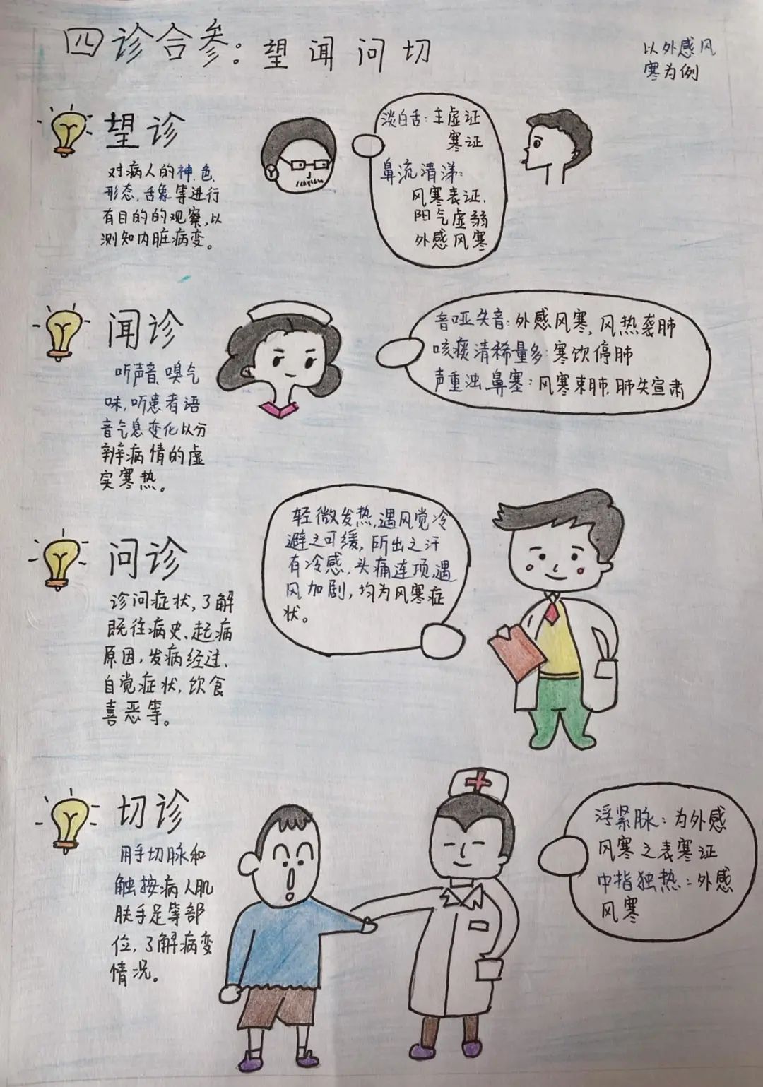 (中医对感冒的诊断常运用四诊合参,“四诊”即为大家耳熟能详的“望、闻、问、切”,“合参”则是指四诊并重,诸法参用,综合全面的收集病情资料)