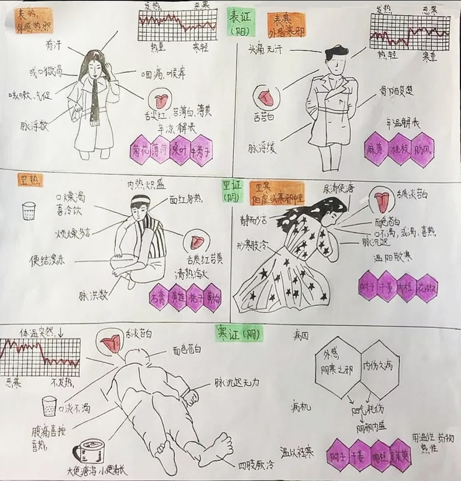 因此,我们这次的图文作品就是以民众自我辨证和治疗为题,提醒广大海内外群众自我医疗的困难性,并且让大家明白中医师的辨证论治的根据以及方式。中医往往四诊合参,通过望闻问切进行八纲辨证,判断感冒的寒热阴阳虚实,以此来判断感冒的属性,决定合适的治疗药物。