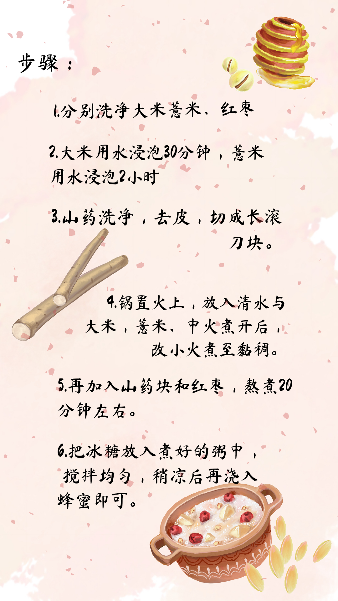 可多食甘味为主的食物,如山药、枸杞、白萝卜、大枣、蜂蜜、花生等,还可适量吃些动物的肝脏,如鸡肝、猪肝、羊肝等;春季会多雨,在饮食中可添加健脾祛湿的食材,如茯苓、薏米等。